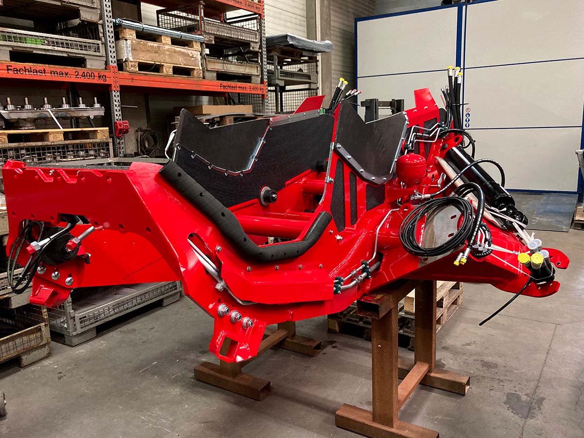 Diese komplexe Schweiß- und Montagebaugruppe wurde als tragendes Maschinenelement gefertigt und montagefertig ausgeliefert. Die Konstruktion ist für hohe statische und dynamische Belastungen im professionellen Maschineneinsatz ausgelegt.